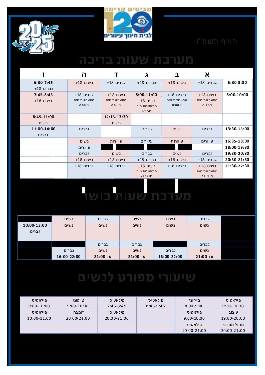 שימו לב לשינויים בשעות הפעילות של מרכז הספורט:
