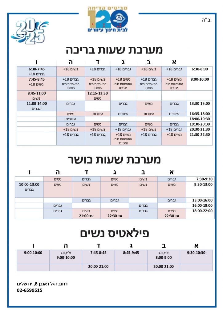 שעות חדר הכושר מופיעות כאן מתחת לשעות הבריכה